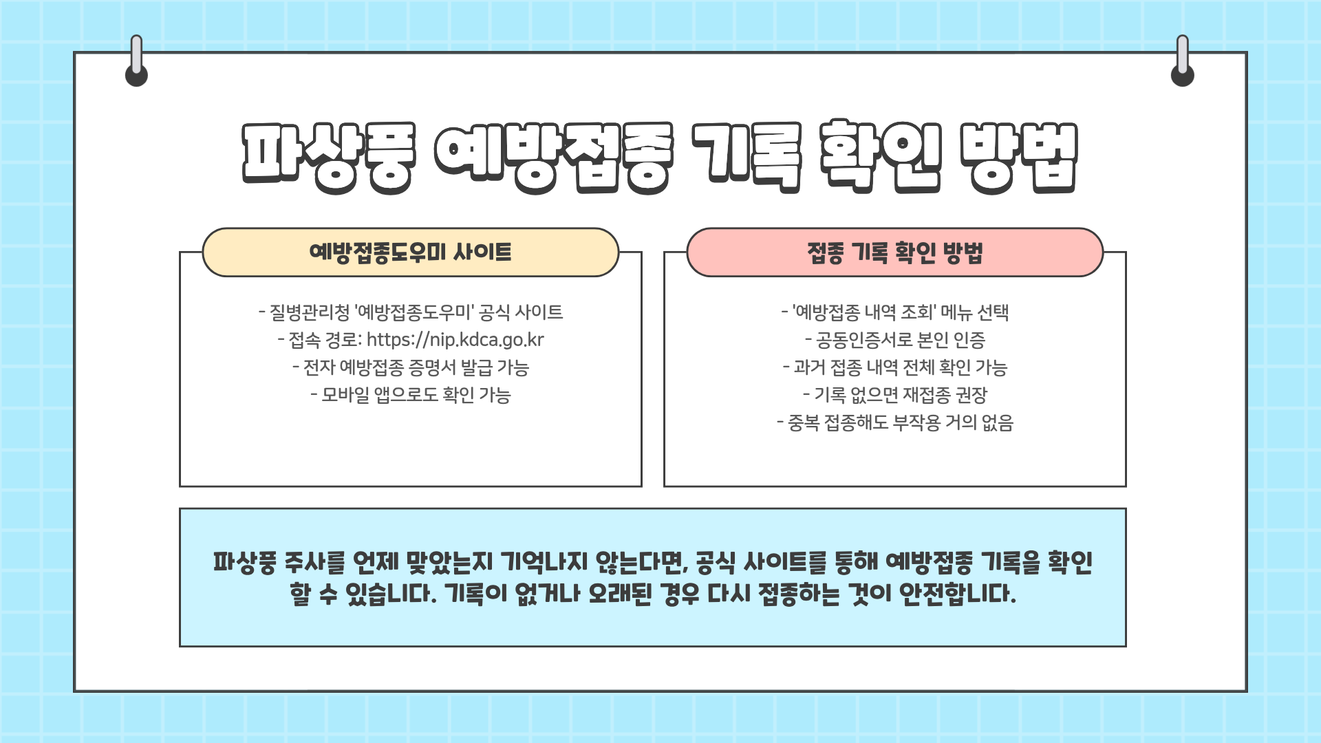 → 예방접종도우미 사이트에서 기록을 확인하거나, 불확실하면 바로 맞아도 된다.