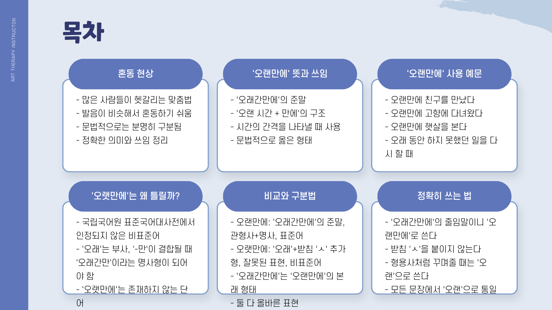 - 헷갈리면 ‘오래간만에’를 떠올려라.