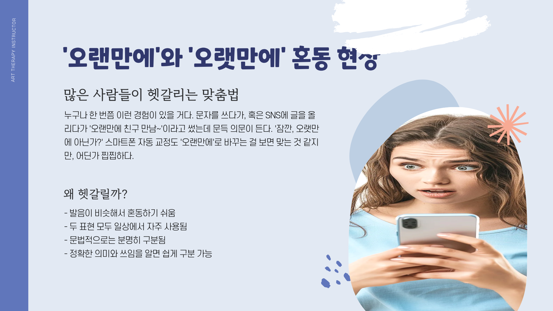 스마트폰 자동 교정도 ‘오랜만에’로 바꾸는 걸 보면 맞는 것 같지만, 어딘가 찝찝하다.