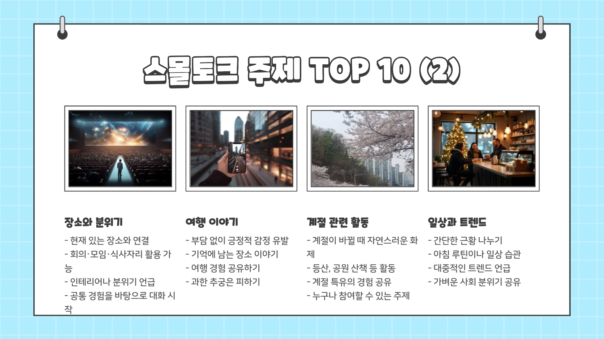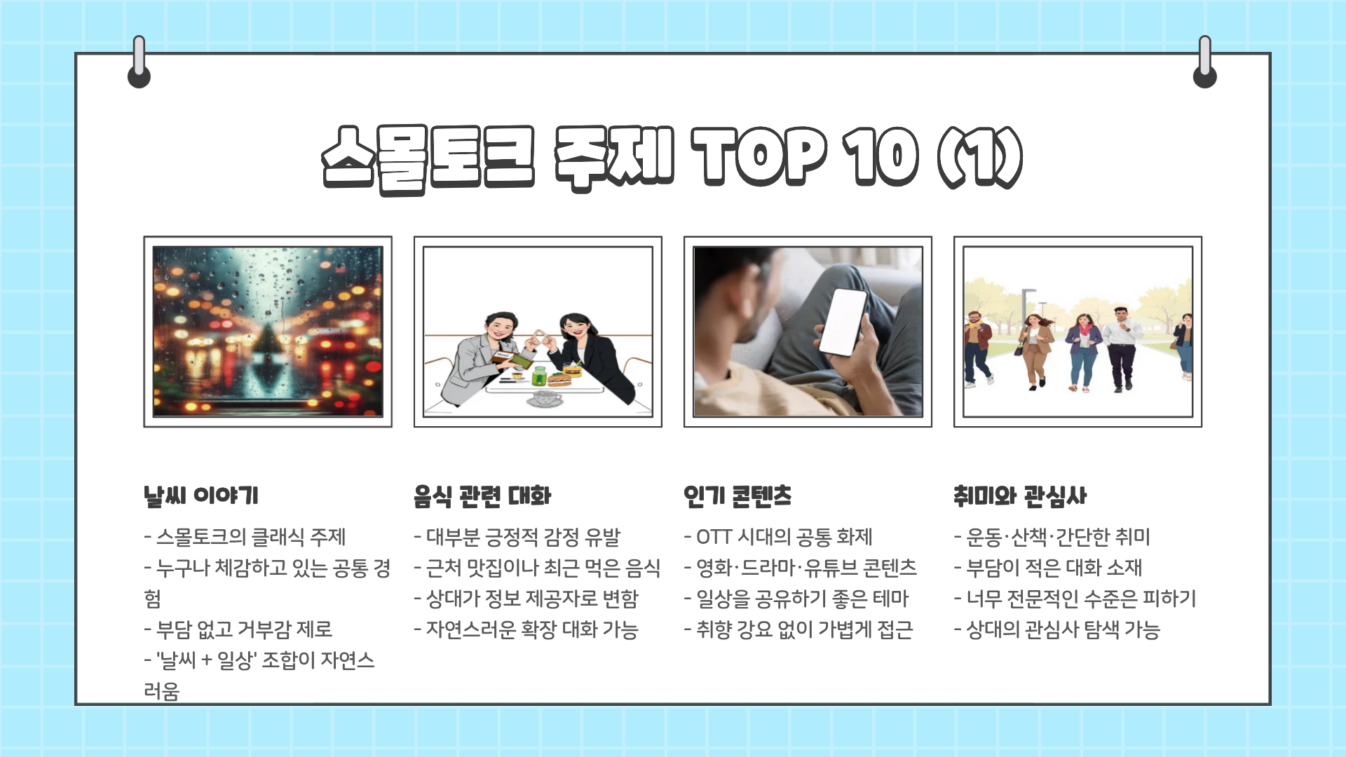 스몰토크 주제 TOP 10 (상황 불문 사용 가능)
