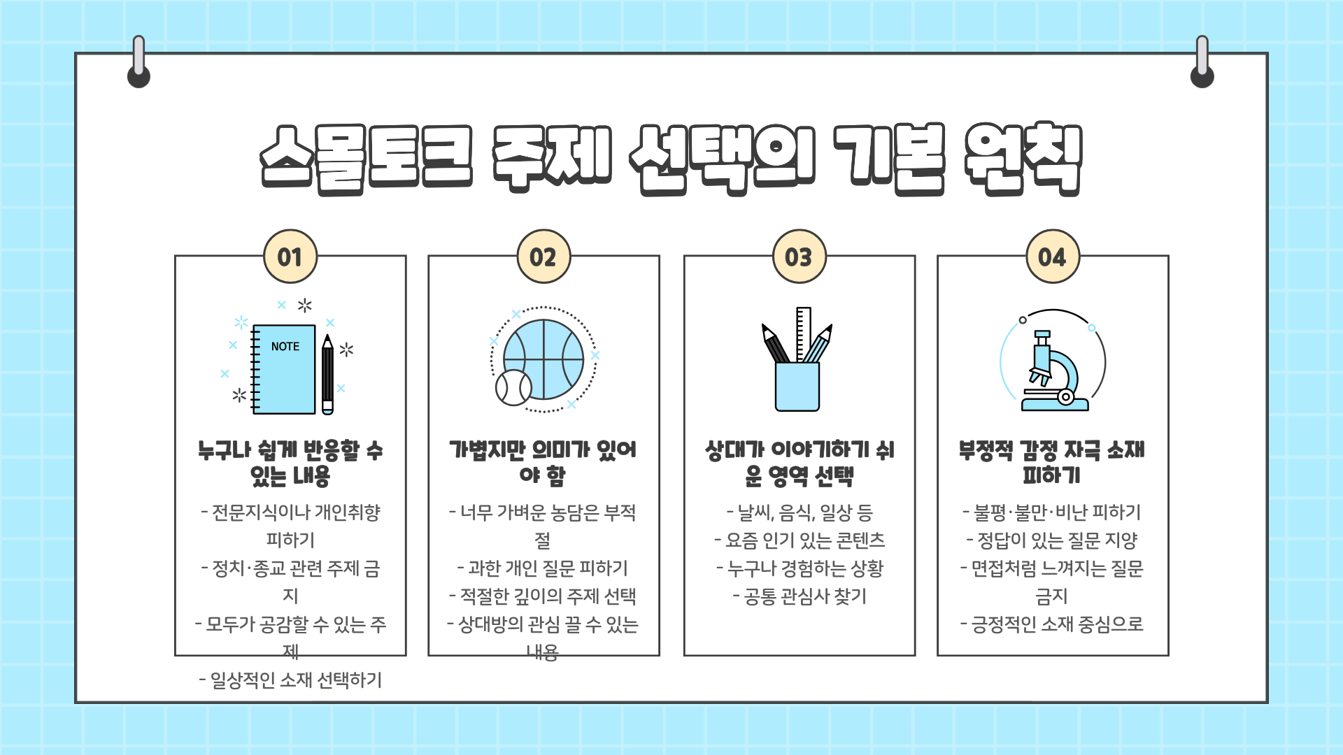 스몰토크 주제 고를 때 기본 원칙 5가지