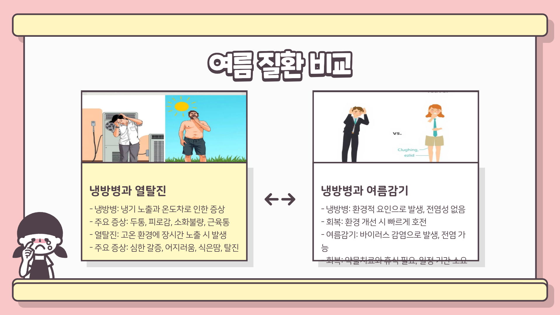 | 여름감기 | 바이러스 | 기침·콧물·발열 |